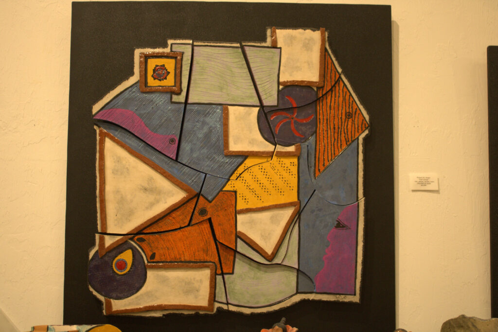 Was named after Albanus Street where my grandmother, grandfather, aunt and uncle lived when I was a child. These relatives were on my father’s side of the family. Rorer Street was where my family had a food provisions business back in the 1950’s and 1960’s. As a child, I would spend time at the store with my father and the crew. Provided me with many good lessons and memories. That business location was approximately at Rorer Street and Roosevelt Boulevard in Philadelphia hence the name. Roosevelt Blvd. is a major route in Philadelphia winding towards the northeastern part of the city. There are a few symbols of the boulevard, which was very curvilinear, seen in the piece.